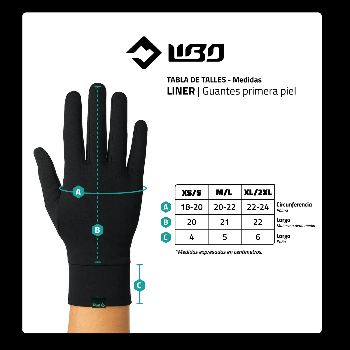 Livianos, flexibles y cómodos, ideales como primera piel. Confeccionados en poliéster con lycra, ofrecen secado rápido y excelente respirabilidad. Perfectos para usar solos o como complemento bajo otros guantes.